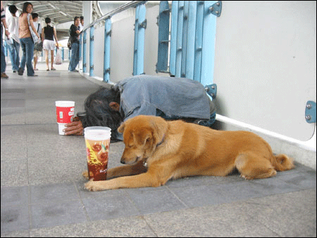 the person next to the dog looks like...a gal...cutie ?how much money u got today ?
